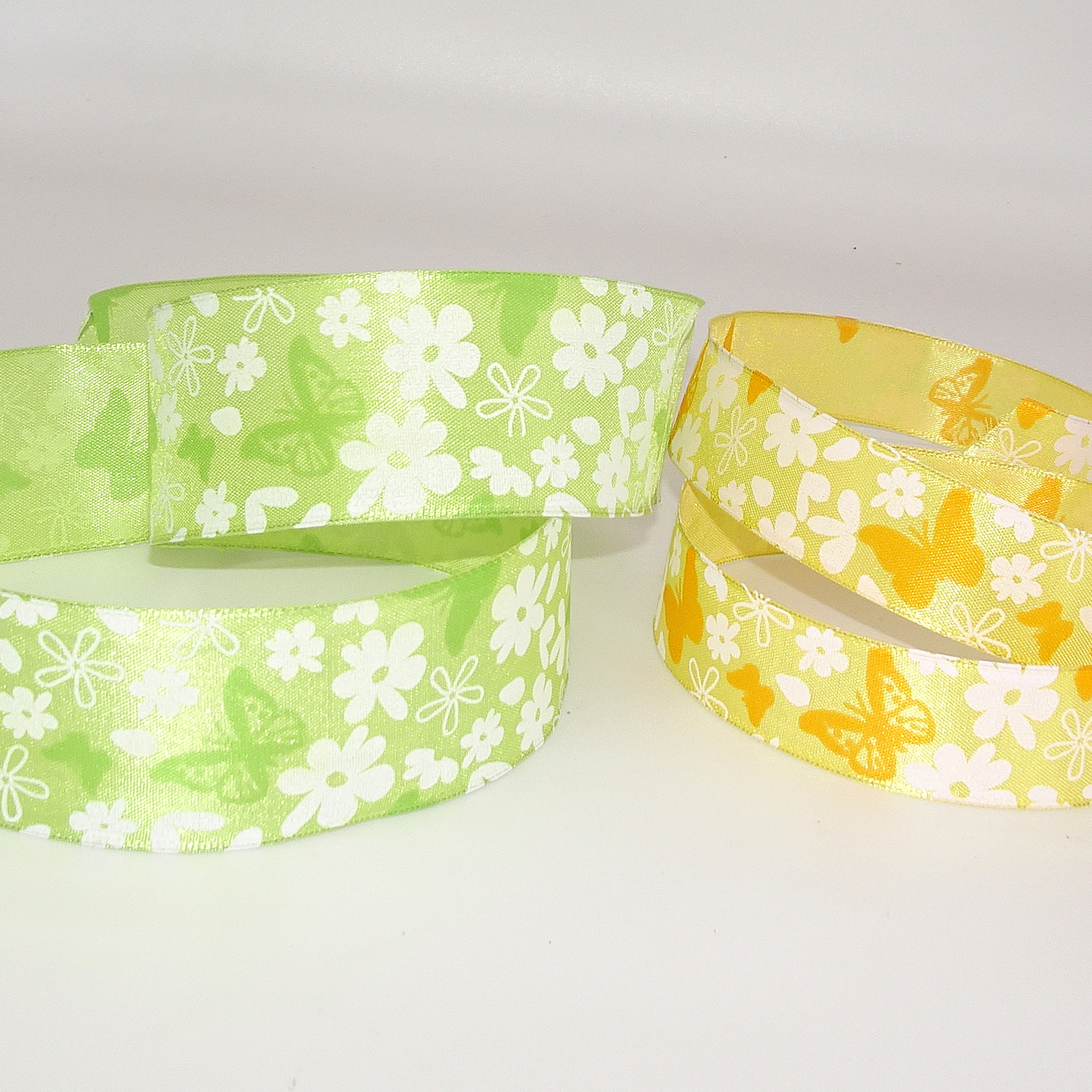 Nastro in taffeta con stampa e bordo in filo metallico |